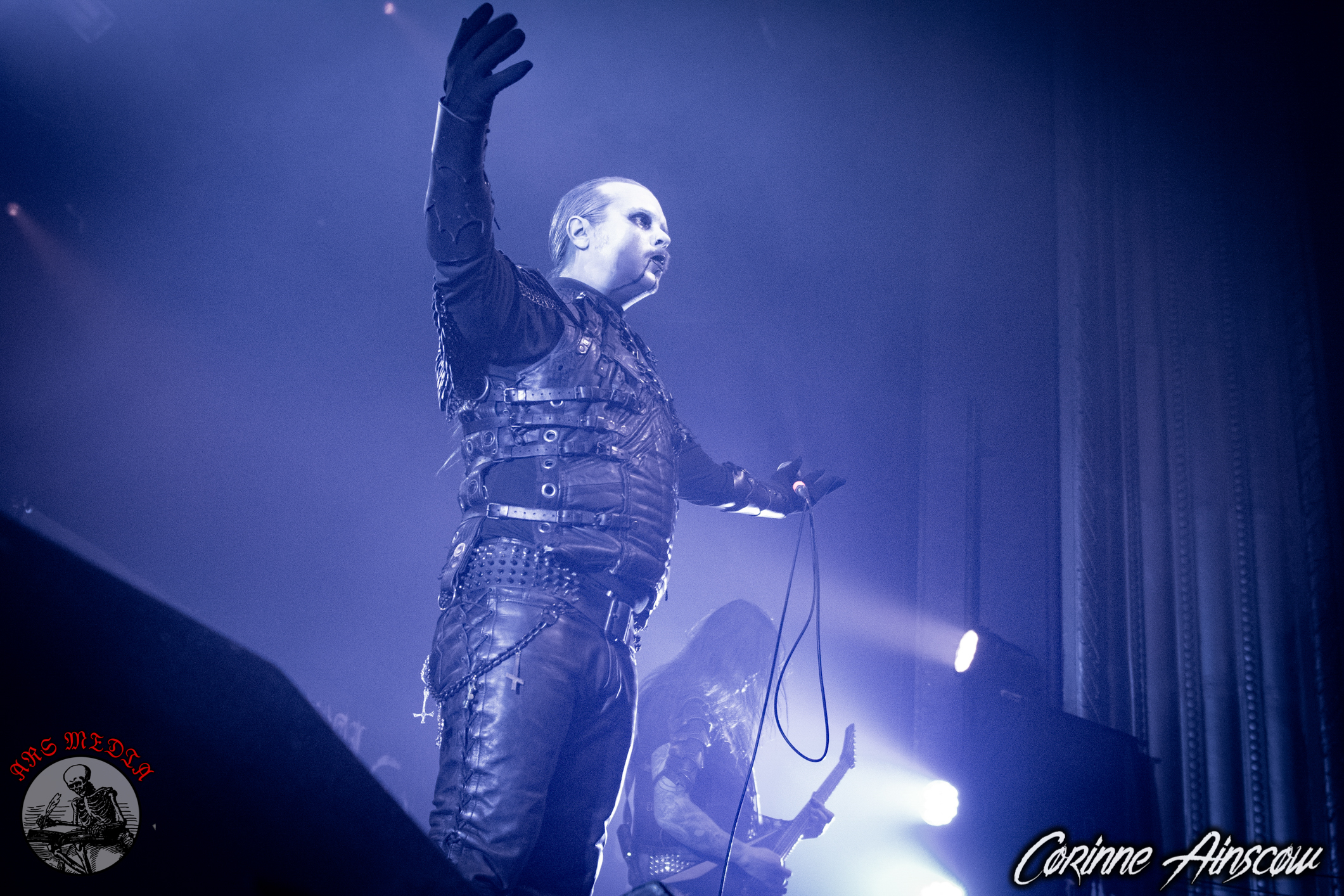 Band que j’attendais avec impatience, Dark Funeral! Ce groupe est définitivement un de mes coups de cœur dans le black métal. Leur set a commencé à 8h45. Encore une fois, on changeait d’atmosphère. Les 5 membres sont arrivés sur scène avec leur magnifique habit. Pour la première chanson qui fût Unchain My Soul, j’ai eu la brillante idée de me positionner près de la gate. La gate c’est appréciable 30 secondes, après tu deviens une petite sardine écrasée… non je devrais plutôt dire broyée. J’aime toujours bien regarder un spectacle de loin ou de haut (comme au MTELUS). Le groupe avait un set d’environ 60 minutes. Tout allait bien comme sur des roulettes jusqu’à ce que le micro de Heljarmadr décide de ne plus fonctionner durant la première chanson. Le problème technique (micro wireless) est survenu quelques minutes, mais le public continuait à encourager le groupe malgré tout. Au moins, celui-ci avait un autre micro et le tout est finalement revenu à la normale. Des vrais chefs, quoi. Le band suédois nous a présenté plusieurs chansons en touchant à plusieurs de leurs albums tel que Where Shadows Forever Reign (2016), Diabolis Interium (2001), Angelux Exuro Pro Eternus (2009), etc. Open The Gate à définitivement été ma chanson préférée durant la soirée. Un retour dans le bon « vieux » Dark Funeral ( EP Dark Funeral, 1994). OPEN THE GATE, SATAN! Tous le chantaient/ criaient en cœur. Ça donnait des petits frissons par moment. Aussi, j’ai trouvé très impressionnant le batteur Janne Jaloma. Ça blastait au quart de tour. En bref, malgré les problèmes techniques au niveau du son, Dark Funeral est un groupe que je désire énormément revoir.
