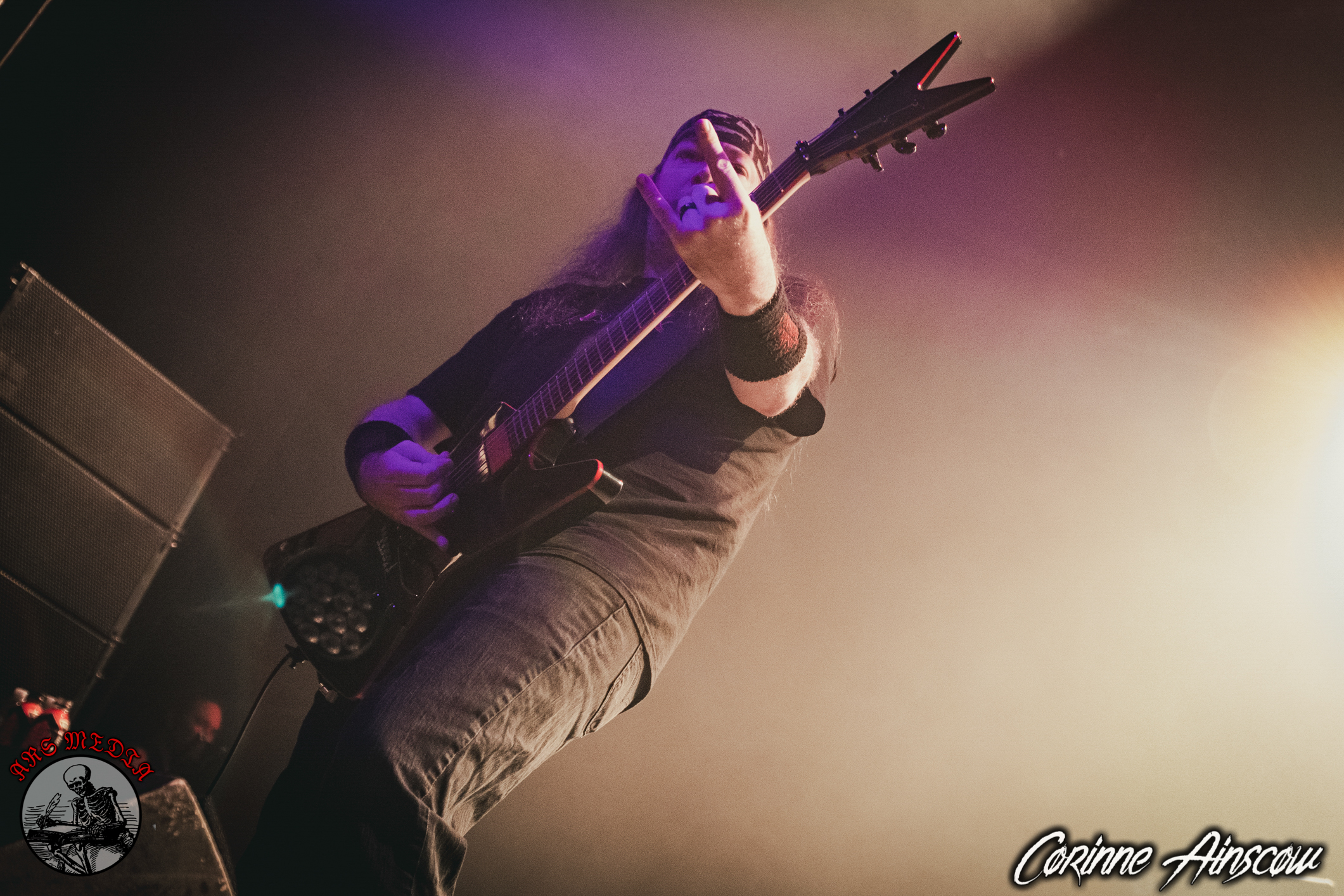 À 7h tapante, c’est Black Anvil qui s’est présenté sur scène. Black Anvil est un groupe new-yorkais, actif depuis 2007. Ils ont à leur actif 5 albums, dont leur tout dernier qui est sorti le 4 novembre! Pour ma part, je ne connaissais aucunement Black Anvil. À vrai dire, j’avais déjà entendu le nom, mais je n’avais jamais écouté. Comme je dis souvent, j’aime toujours découvrir les bands que je ne connais pas en spectacle. Ce groupe de black/thrash a su livrer une bonne prestation. Étant le band d’ouverture, la foule déjà bien présente avait l’air de bien apprécier le band. Ce qui m’a « accroché » est le mixte des voix. En effet, il y avait le chanteur principal/ bassiste Paul Delaney et les deux guitaristes qui possédaient un micro. Je ne sais pas exactement lequel des deux guitaristes exécutait la voix claire, mais je trouvais que ça s’agençait bien assez bien à la musique. Ce qui m’a aussi beaucoup accroché, c’est le batteur. Celui-ci dégageait une grande énergie avec ses expressions faciales, mais aussi de la façon qu’il jouait. On pouvait bien ressentir son énergie, et ce jusqu’à la fin. Si je ne m’abuse, le groupe à joué environ 6-7 chansons, toutes de leur nouvel album Regenesis. Bref, Black Anvil est un bon band d’ouverture