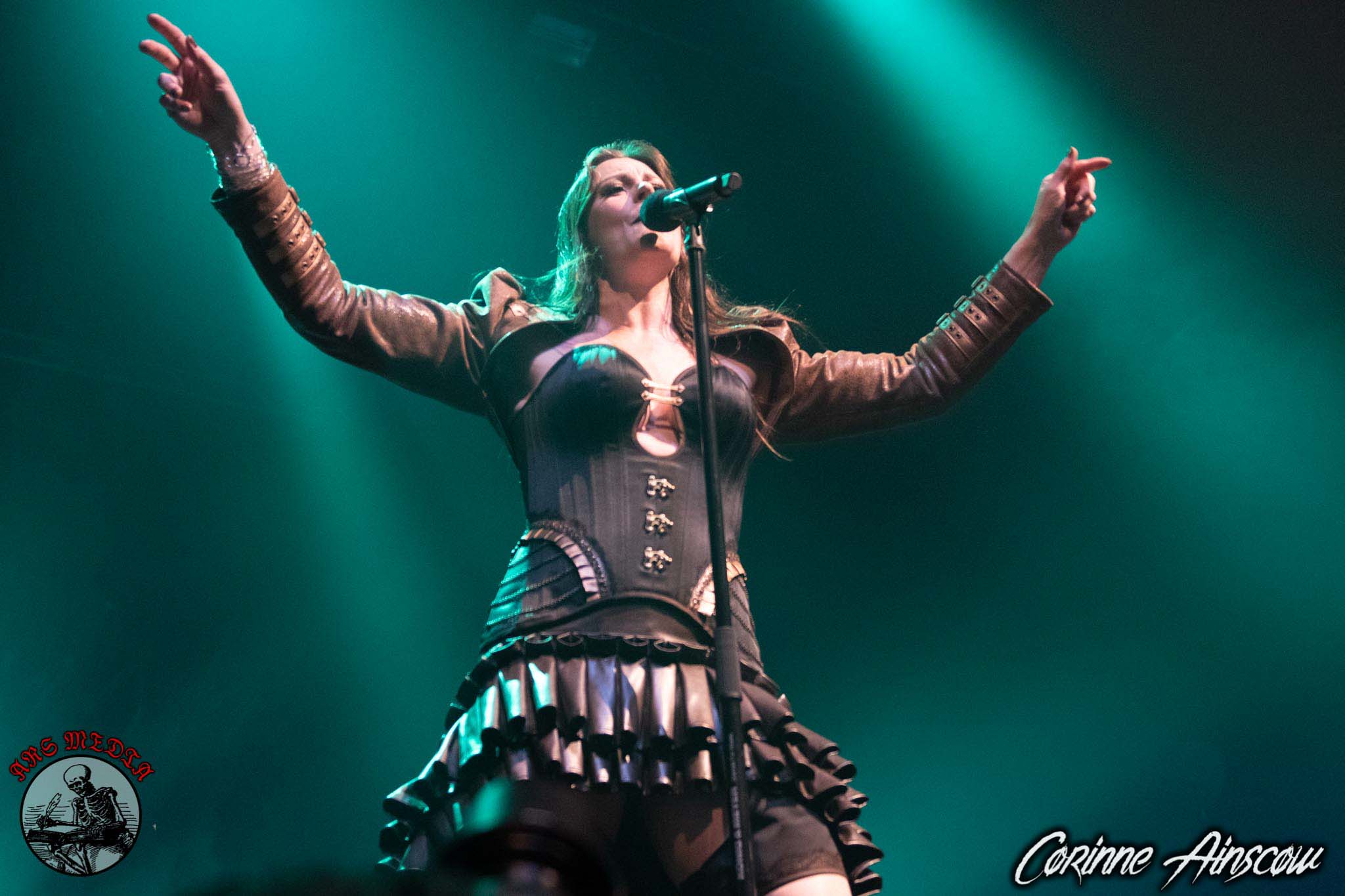 Planet Hell est la pièce suivante. Quelle frontwoman! Les passages en solo du très couetté Tuomas Holopainen demeurent encore une fois impeccables. Il gère ce groupe d’une main de maître. La surprise du spectacle fut Tribal puisque le musicien qui se trouve derrière plusieurs morceaux de Nightwish, Troy Donockley, se présente sur scène, flûte et uilleann pipes à la main. J’ai maintenant réponse à mes questions : qui chantera les segments de voix masculine qui étaient auparavant chantés par Marco Hietala. Pendant Elan, il flûtise de plus belle, Floor est rayonnante, souriante et très généreuse avec le public aguerri qui répond de façon impeccable à celle-ci lorsqu’elle offre le micro aux spectateurs. C’est ensuite Storytime qui rend le public hors de lui. Le body surf bat son plein et Floor en profite pour nous rappeler de prendre soin les uns des autres. De sages paroles qui ne seront pas écoutées pour la suite du spectacle.