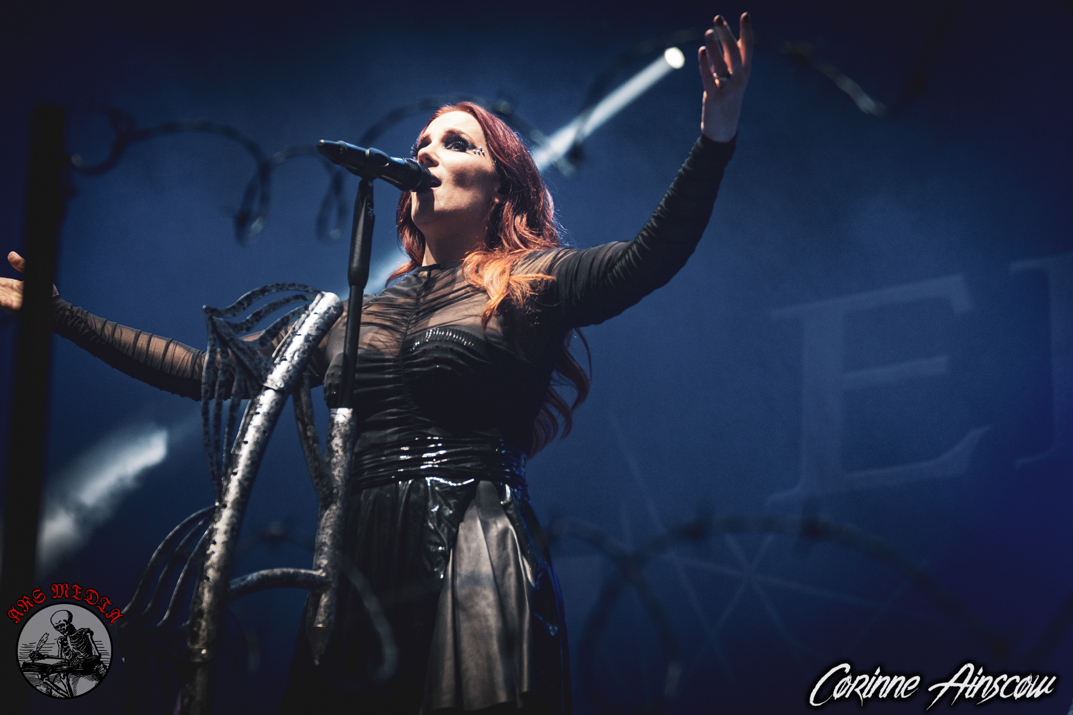 La chanteuse Simone Simons est toujours aussi charmante et tient le public en haleine de sa superbe voix, nous remerciant régulièrement en français, de même qu’Isaac Delahaye qui, étant belge, se prête lui aussi volontiers au jeu de la francophonie avec son « mot du jour » (un incontournable bière), afin de lancer un Sancta Terra majestueux.